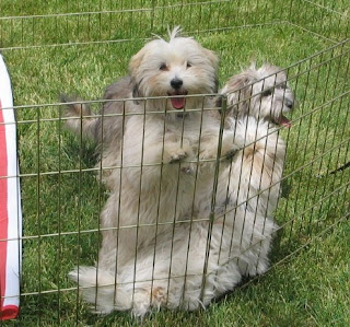 The puppies had their first bath this weekend, and it wasn't completely an ordeal. They did pretty good. You will see a photo of Alfie givng me the evil eye after I finished blow drying him.